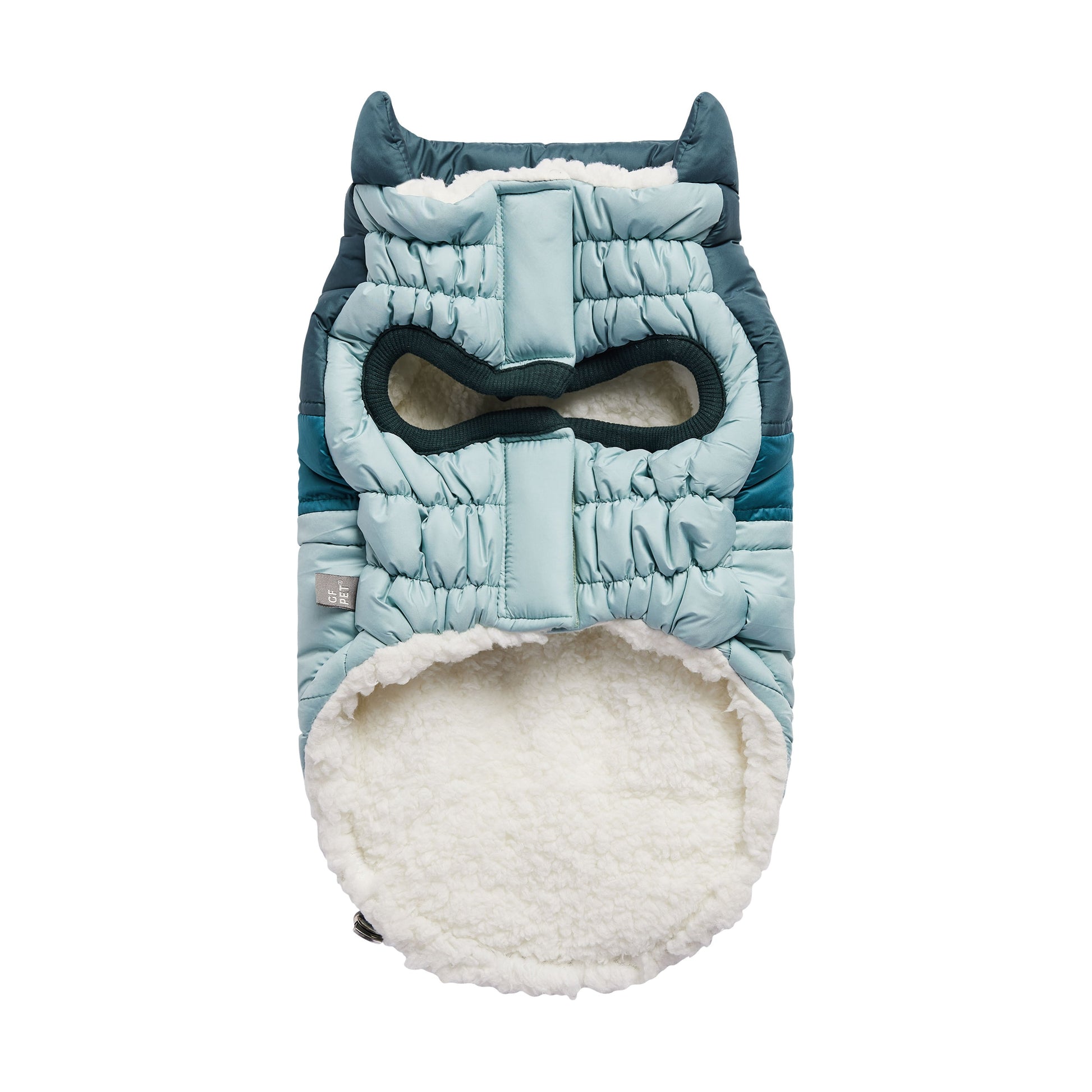 The GF PET Elasto-FIT Retro Puffer is a great choice for active dogs who are looking for the freshest carefree fashion and warmth. Its' ultra puff look and trendy color blocks are a stunning statement of canine vogue! Both retro and modern at the same time, this gorgeous puffer sports oversized faux pockets, accent stitching and next generation styling. With GF PET signature pocket tabs & contrast binding, this retro puffer keeps it real with snuggly warm popcorn sherpa lining. Water repellent and super adjustable, with patented Elasto-FIT technology! Designed for cool dogs!!